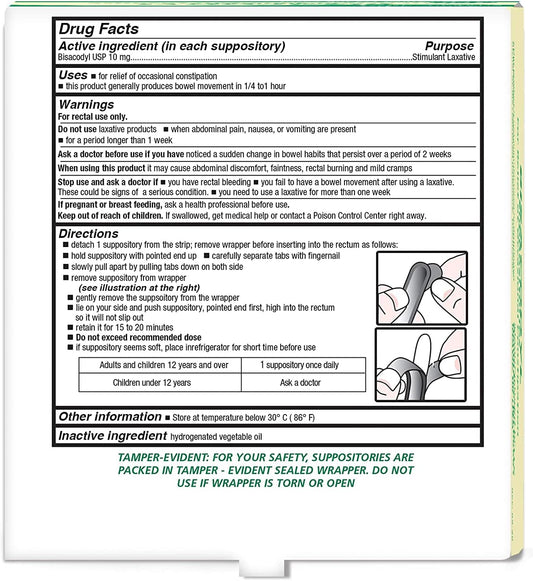 Bisacodyl Suppositories, 10 mg, Box of 100's