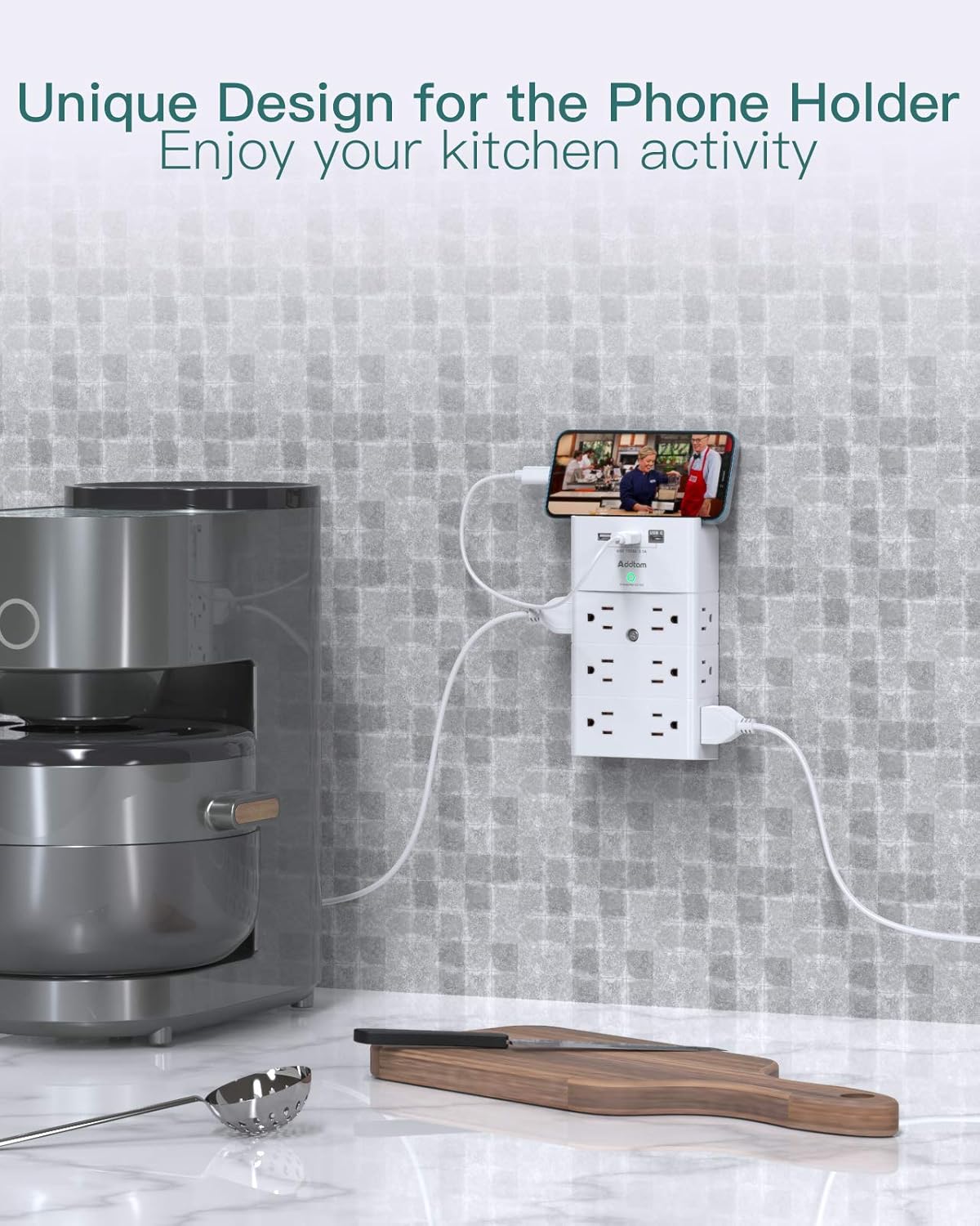 Multi Plug Outlet - Addtam Surge Protector Wall Mount with 12 Outlet Extender- 3 Sides and 3 USB Ports (1 USB-C), Outlet Splitter Power Strip for Home, Office, Hotel, White