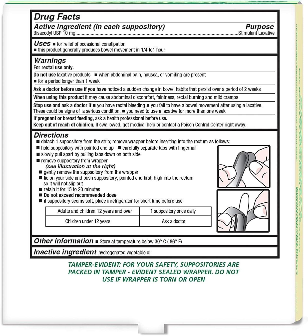 Choose Bisacodyl Suppositories, 10 mg for fast, effective, and reliable relief from constipation.