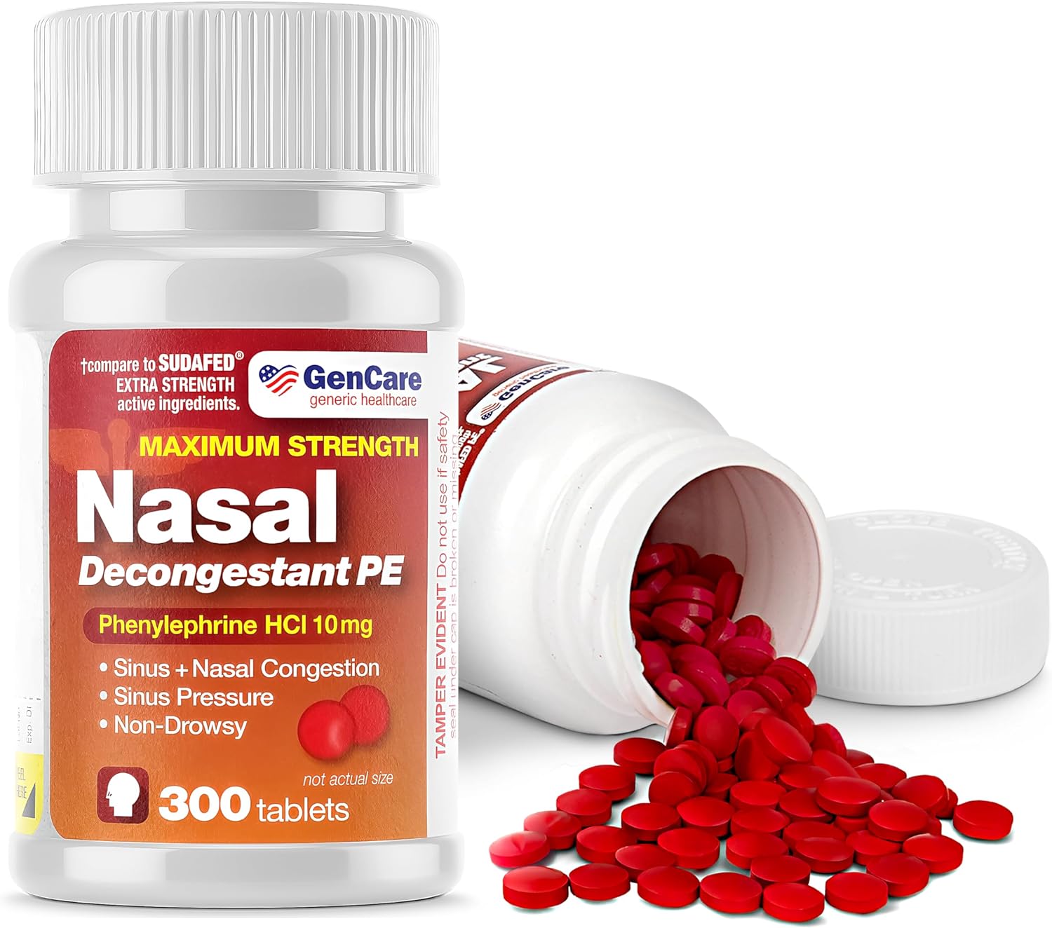 GenCare Nasal Decongestant 10mg Tablets Phenylephrine HCl 300 Tablets Per Bottle Value Pack Non Drowsy Sinus and Nasal Congestion Relief Lower Sinus Pressure Due to Allergies or Illness