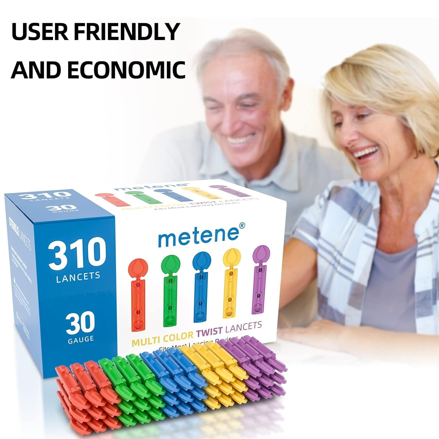 Metene Twist Top Lancets, 310-Count, 30-Gauge Diabetic Test Lancets, Multicolored