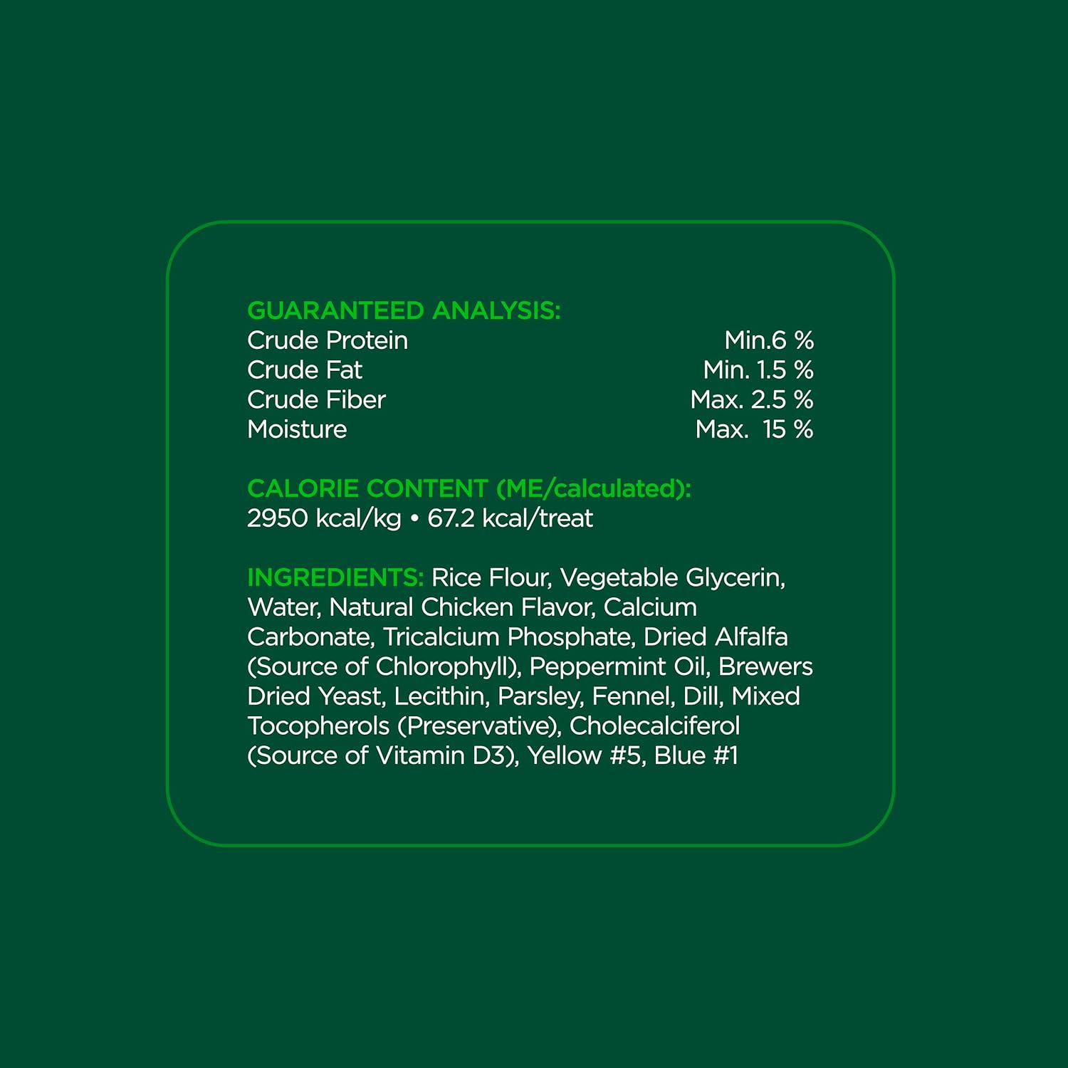Natural Breath Fresheners: Infused with alfalfa, peppermint, parsley, fennel, and dill to combat bad breath naturally.