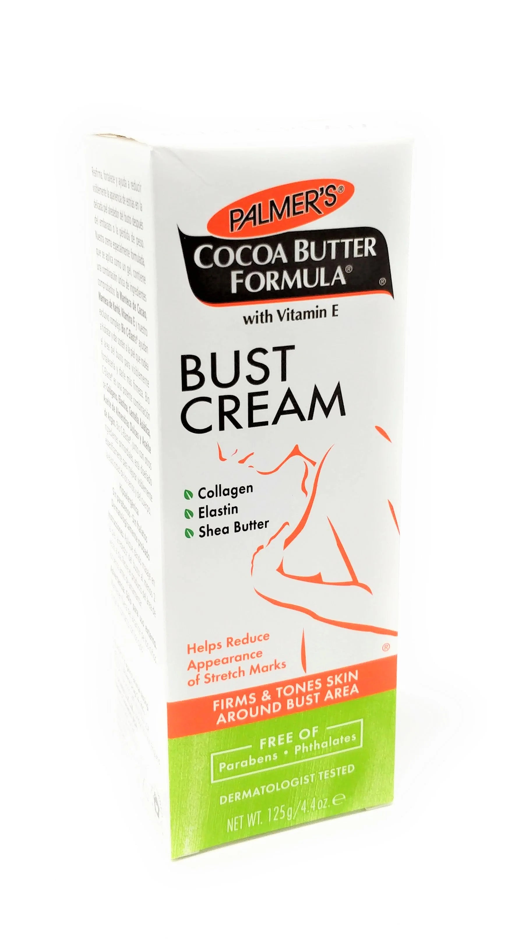 Palmer's Cocoa Butter Formula Bust Cream is a specially formulated cream that smoothes on like a gel. It will firm and tone your bust area even after pregnancy and weight loss. Made with a unique blend of pure Cocoa Butter, Shea Butter and Vitamin E, to maximize your skin's moisturization, while Collagen, Elastin and other proven ingredients help support the skin around the bust area and increase tone and firmness.