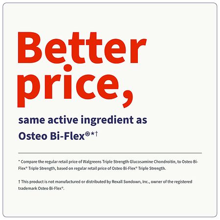 Triple Strength Joint Support Formula Walgreens Glucosamine Chondroitin Tablets are formulated to support joint health and flexibility. With a powerful combination of glucosamine and chondroitin, this supplement helps maintain healthy cartilage and supports the natural cushioning between joints. Ideal for those looking to maintain an active lifestyle, this triple-strength formula offers long-term joint care.